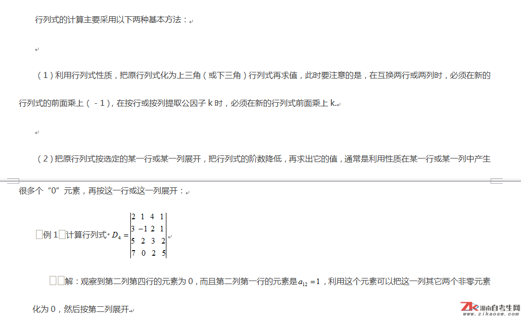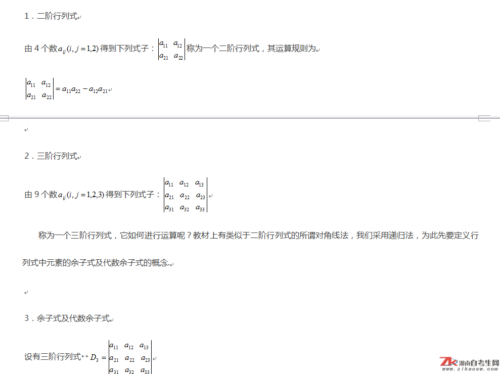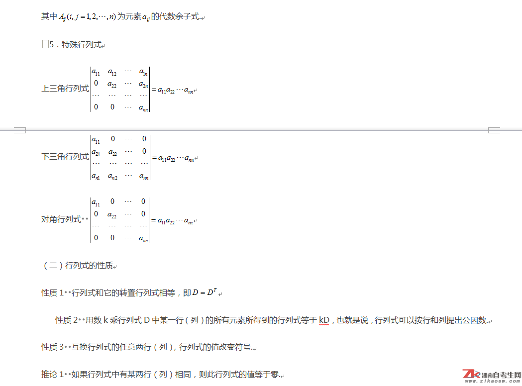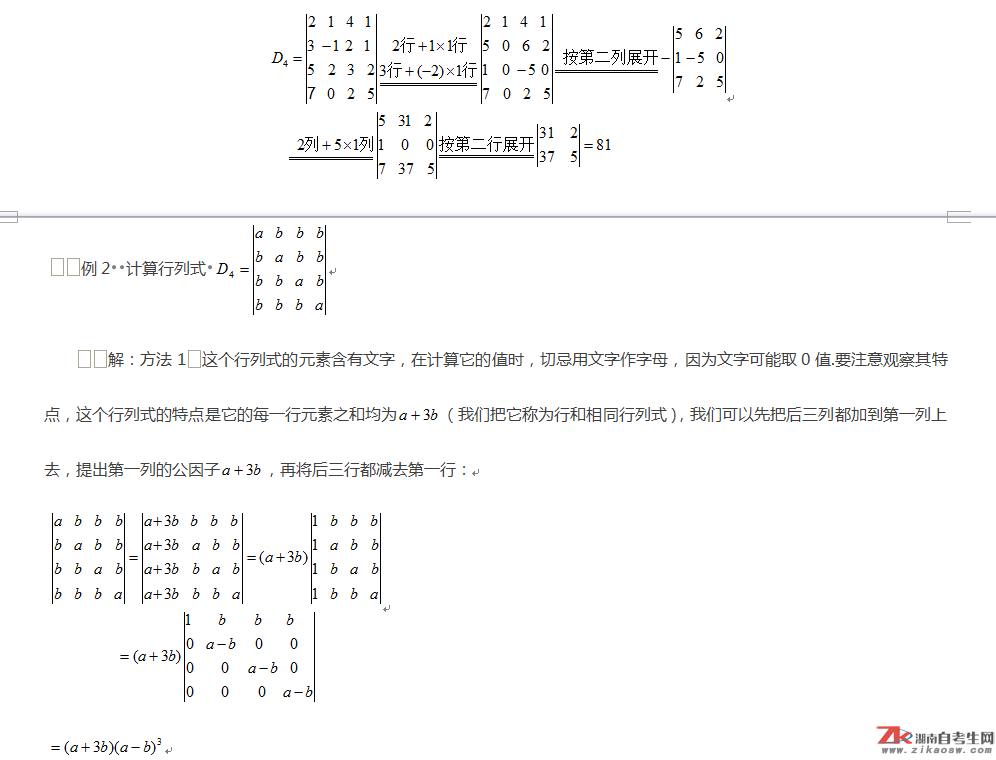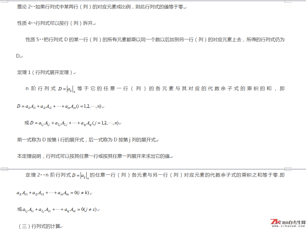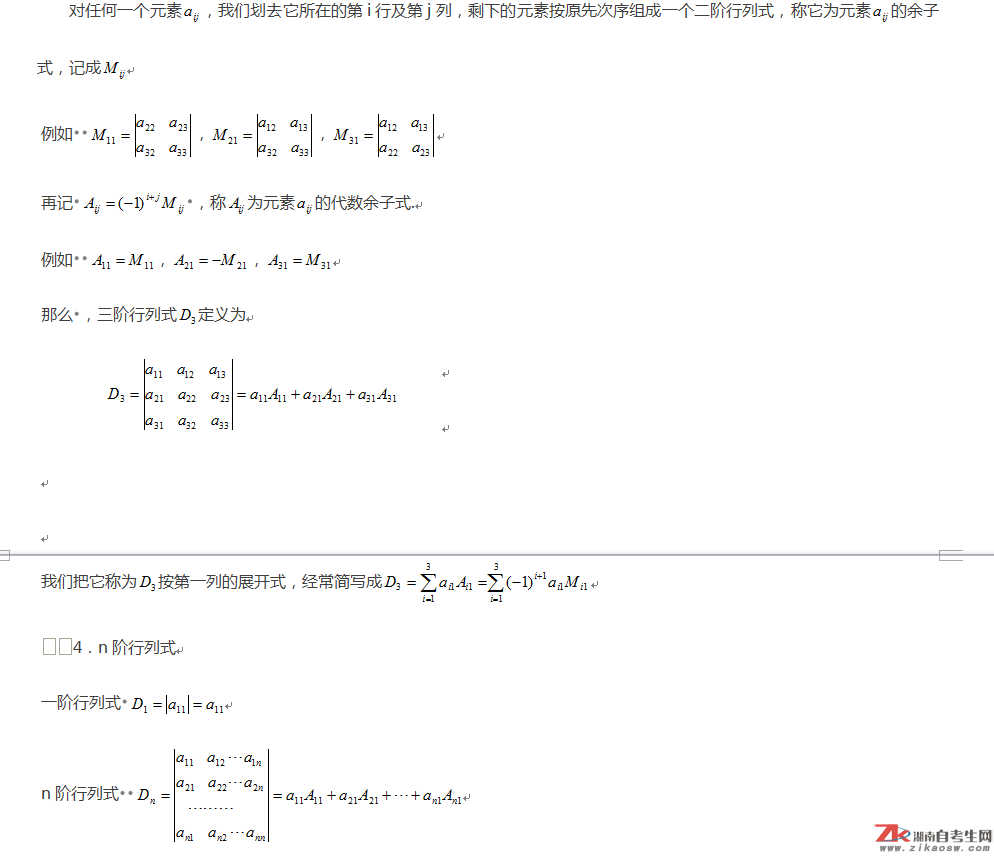 以下是湖南自考生网为考生收集、整理的自考本科:04184线性代数复习资料第一章行列式
