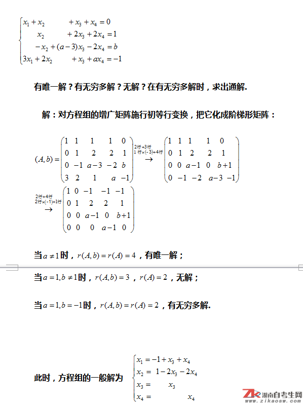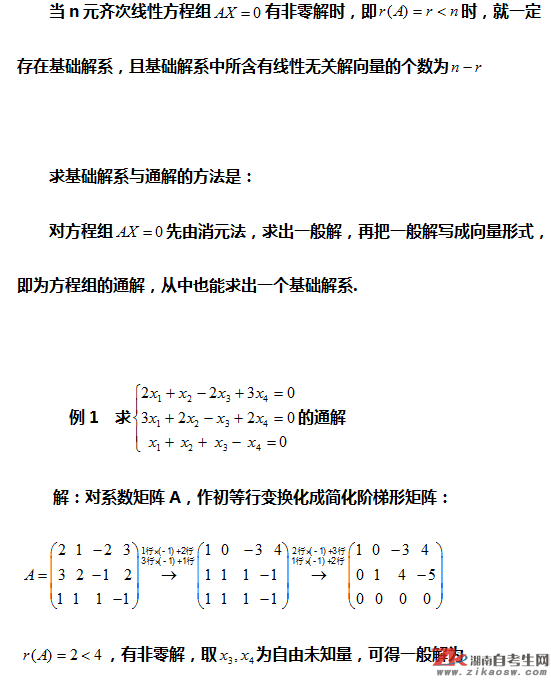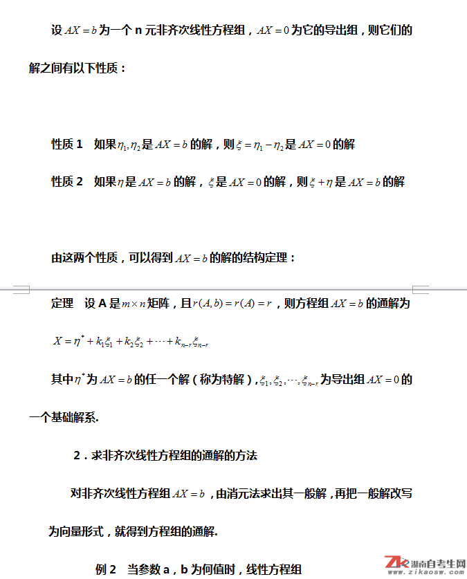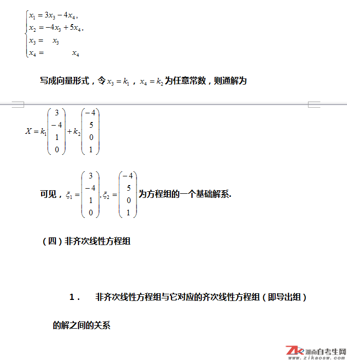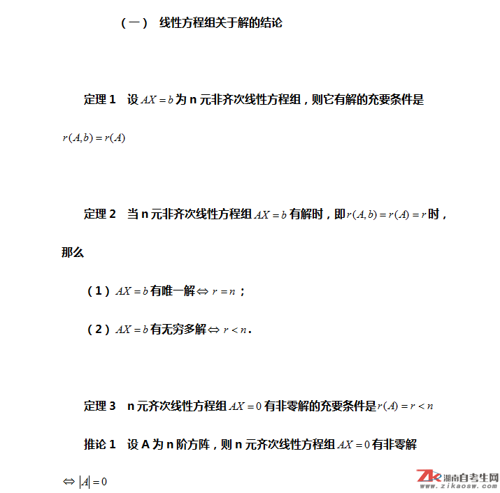以下是湖南自考生网为考生收集、整理的自考本科:04184线性代数复习资料第四章线性方程组。